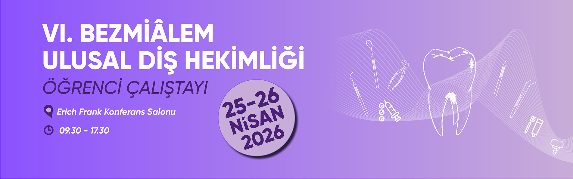 HABERLER TÜM HABERLER NEWS All NEWS Üniversitemiz Ortodonti Anabilim Dalı’ndan Uluslararası Başarı Bezmiâlem, 2025-2026 Akademik Yılına Bilim ve Vicdanla Başladı Diş Hekimliği Fakültemiz Akreditasyon Ara Değerlendirmesini Başarıyla Geçti TÜM HABERLER DUYURULAR TÜM DUYURULAR ANNOUNCEMENTS 25.03.2026 2025-2026 Eğitim – Öğretim Yılı Bahar Dönemi Ara Sınav Sınav Programı 22.01.2026 2025-2026 Eğitim – Öğretim Yılı Mazeret Sınavı Sınav Programı 22.01.2026 2025-2026 Eğitim – Öğretim Yılı Bütünleme Sınavı Sınav Programı 05.01.2026 2025-2026 Eğitim – Öğretim Yılı ara sınav/ final sınavı Sınav Programı ALL ANN TÜM DUYURULAR