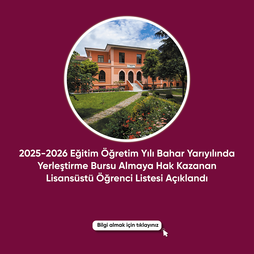 IMPORTANT DATES ALL IMPORTANT DATES ALL EVENTS ANNOUNCEMENTS ALL ANN ANNOUNCEMENTS 29.01.2026 2025-2026 Spring Semester Placement Scholarship Recipients 26.01.2026 25-26 Fall Semester / Reserve Students Eligible to Register for Graduate Program... 16.01.2026 2025-2026 Spring GraduatePrograms:List Candidates Eligible for Final Registratio... 15.12.2025 Applications to Graduate Programs for 2025-2025 Academic Year Spring Semester ALL ANN ALL ANNOUNCEMENTS NEWS ALL NEWS NEWS All NEWS Graduate Thesis Defenses Successfully Completed in the 2024-2025 Fall Semester Doctoral Thesis Defense Examinations in the Spring Semester of the 2023-2024 Orpheus Virtual Workshop on PhD Supervision in Biomedicine and Health Sciences ALL NEWS