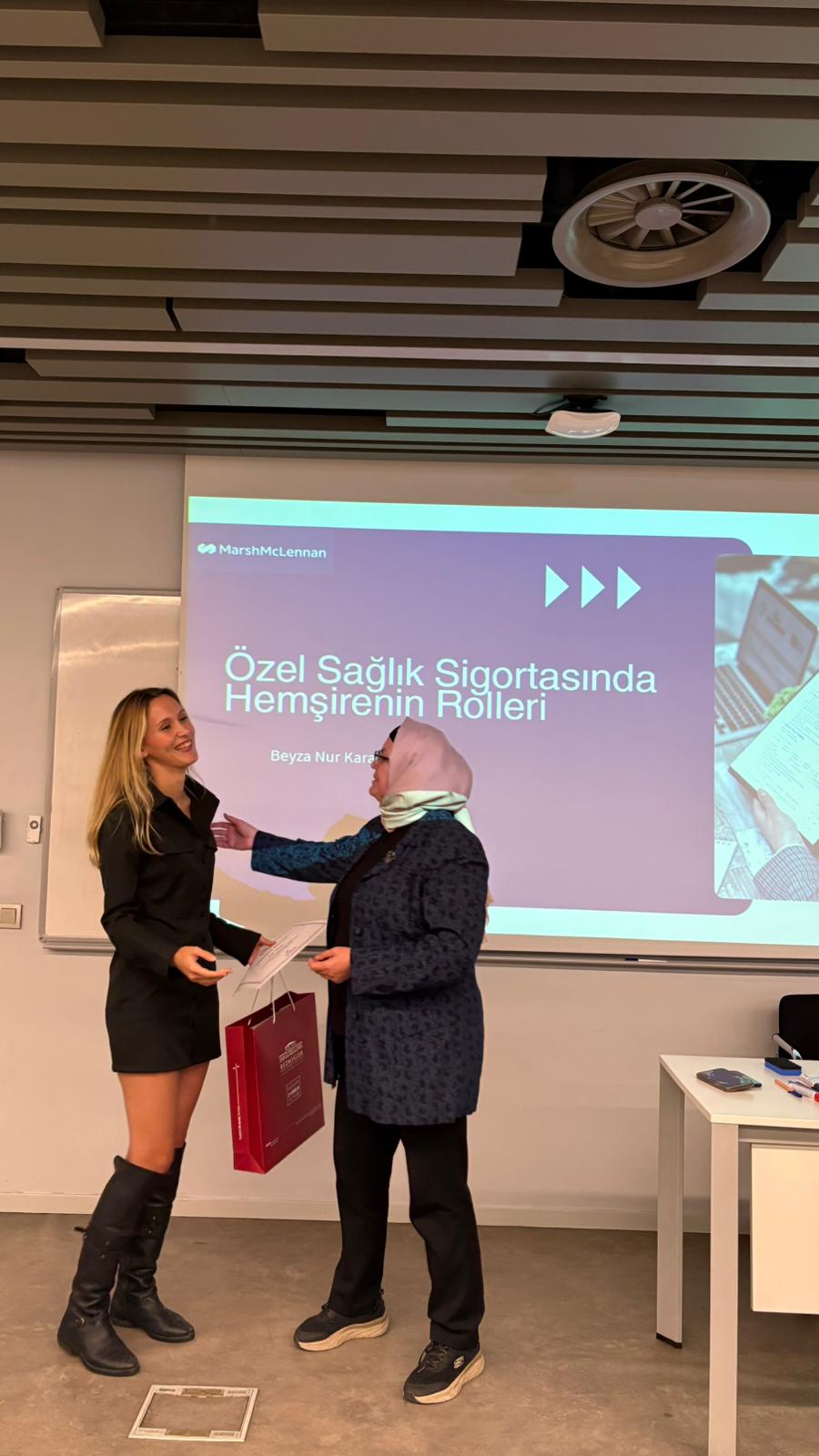 ​Bezmialem Vakıf Üniversitesi Sağlık Bilimleri Fakültesi Hemşirelik Bölümü ve Kariyer ve Akademik Gelişim Koordinatörlüğü (KAGEM) iş birliğiyle düzenlenen “Hemşirelikte Bilim ve Kariyer Günleri" etkinliğin de, Bezmialem Vakıf Üniversitesi Sağlık Bilimleri Fakültesi Hemşirelik Bölümü mezunlarımızdan Sigorta Hemşiresi / Medikal Danışman Beyza KARAOĞLAN, “Özel Sağlık Sigortasında Hemşirenin Rolleri" başlıklı sunumuyla 29 Eylül 2025 tarihinde öğrencilerimizle bir araya geldi.