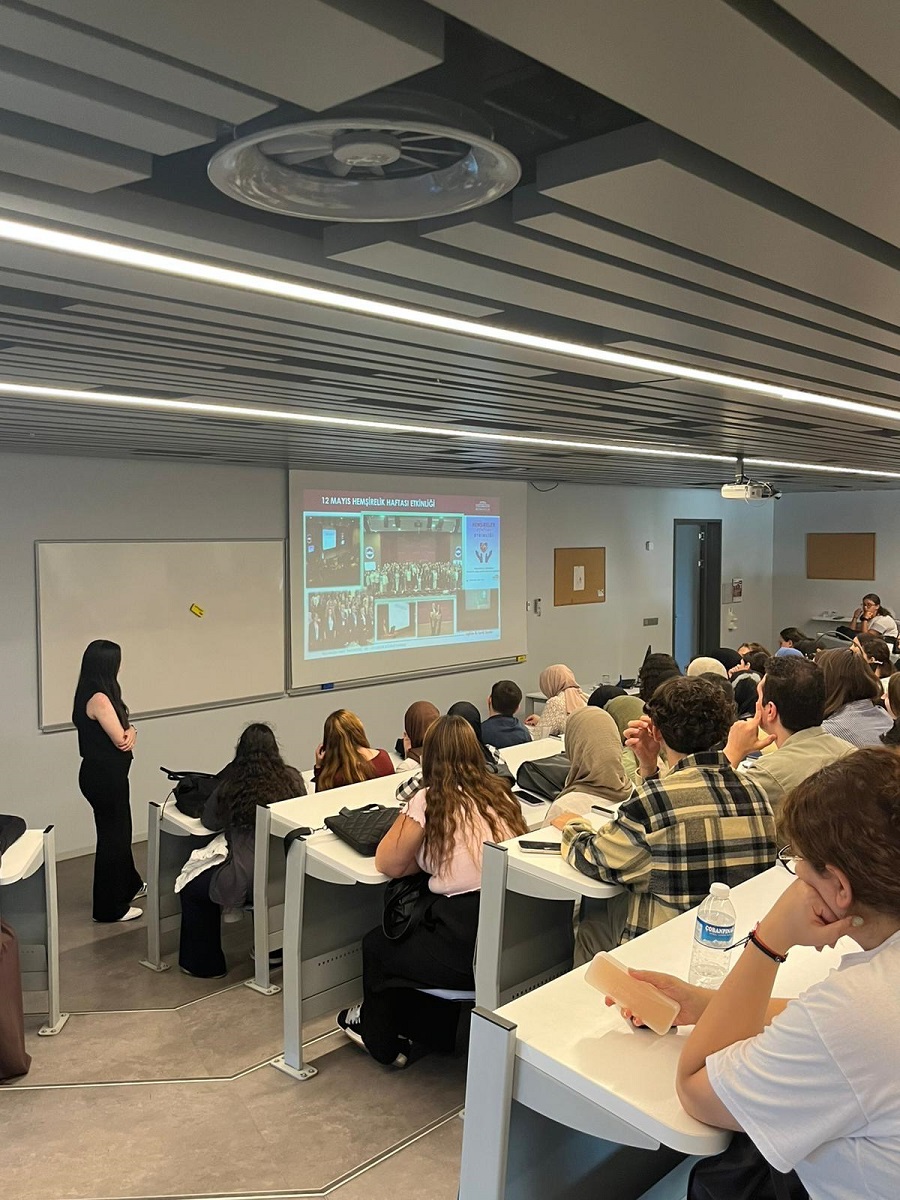 Hemşirelik Bölümü Uyum Programı 17.09.2025 Hemşirelik Bölümünde Yeni Öğrencilere Yönelik Uyum Programı GerçekleştirildiSağlık Bilimleri Fakültesi Hemşirelik Bölümü tarafından, birinci sınıf öğrencilerimizin bölüme uyum süreçlerini desteklemek amacıyla “Uyum Programı" düzenlendi.Programın açılışı, Hemşirelik Bölüm Başkanı Prof. Dr. Türkinaz Aştı'nın yaptığı konuşmayla gerçekleştirildi. Açılışın ardından, bölüm öğretim üyelerimiz kısa öz tanıtımlar yaparak yeni öğrencilerimizle tanışma fırsatı buldu.Etkinlik kapsamında Akran Yönderliği Mentör Öğrenci Başkanı Gizem Güzel, bölüm tanıtımını gerçekleştirerek hem fakülte yaşamına hem de mesleki gelişim sürecine ilişkin deneyimlerini paylaştı.Program, öğrenciler ve akademisyenlerin bir araya geldiği samimi bir kokteyl ile sona erdi.Hemşirelik Bölümü olarak aramıza yeni katılan tüm öğrencilerimizi tebrik ediyor, başarılı ve verimli bir eğitim-öğretim yılı diliyoruz. Hemşirelik Bölümü Uyum Programı SON HABERLER Fizyoterapi’de Bir Konu Bir Konuk Toplantısı “Obezitede Fizyoterapi ve Rehabilitasyon” 07.10.2025 Erasmus Bilgilendirme Etkinliği 29.09.2025 Hemşirelik Bölümü Uyum Programı 17.09.2025 Tüm Haberler