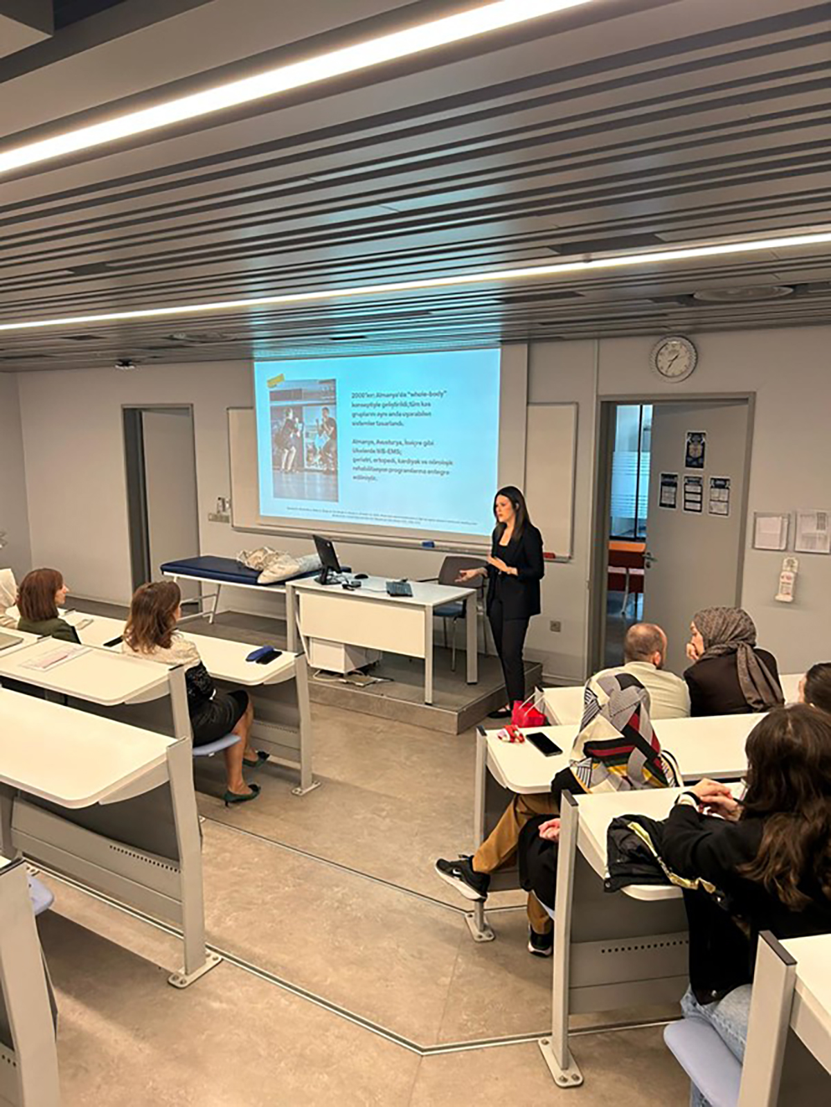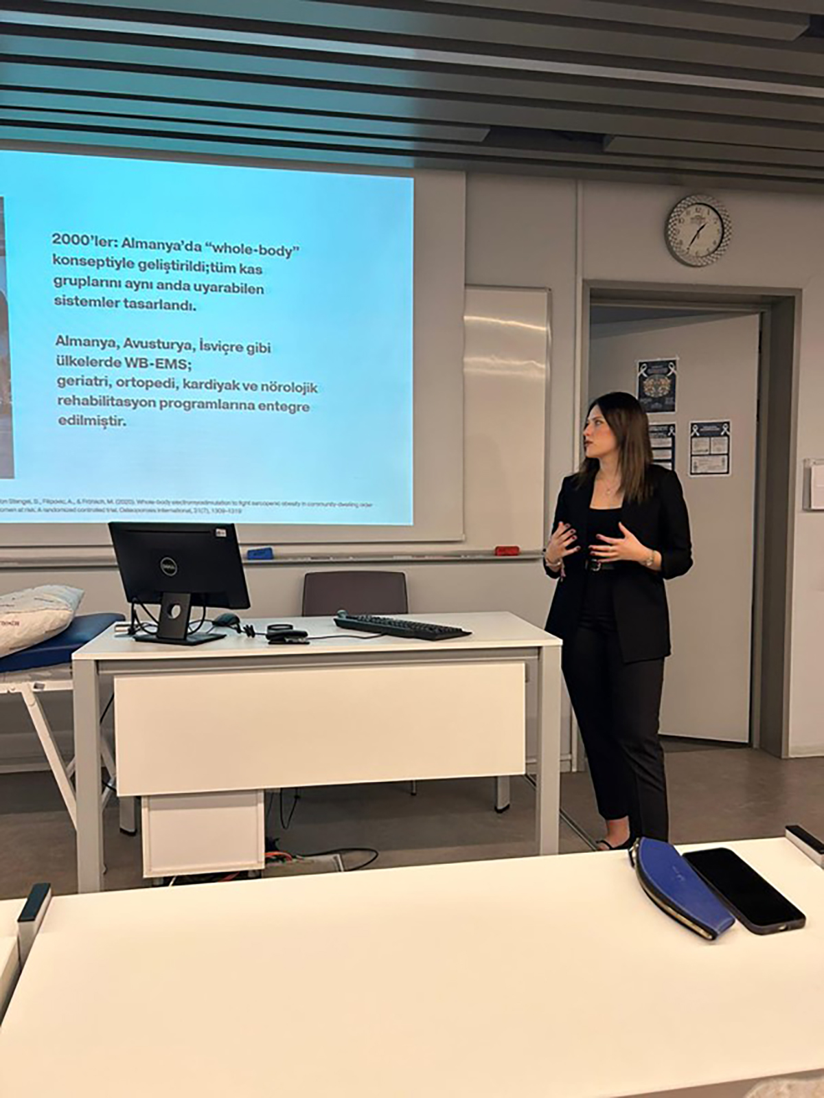 Etkinlikte, elektriksel kas uyarı sistemi (EMS) uygulamalarının fizyoterapi ve rehabilitasyondaki yeri, etki mekanizmaları ve klinik/pratik kullanım alanlarına ilişkin güncel yaklaşımlar ele alınmıştır. Klinik ve uygulamaya yönelik bakış açısının bir arada sunulduğu bu oturum, öğrencilerimize EMS teknolojisinin kullanımına dair kapsamlı bir perspektif sunmuştur.