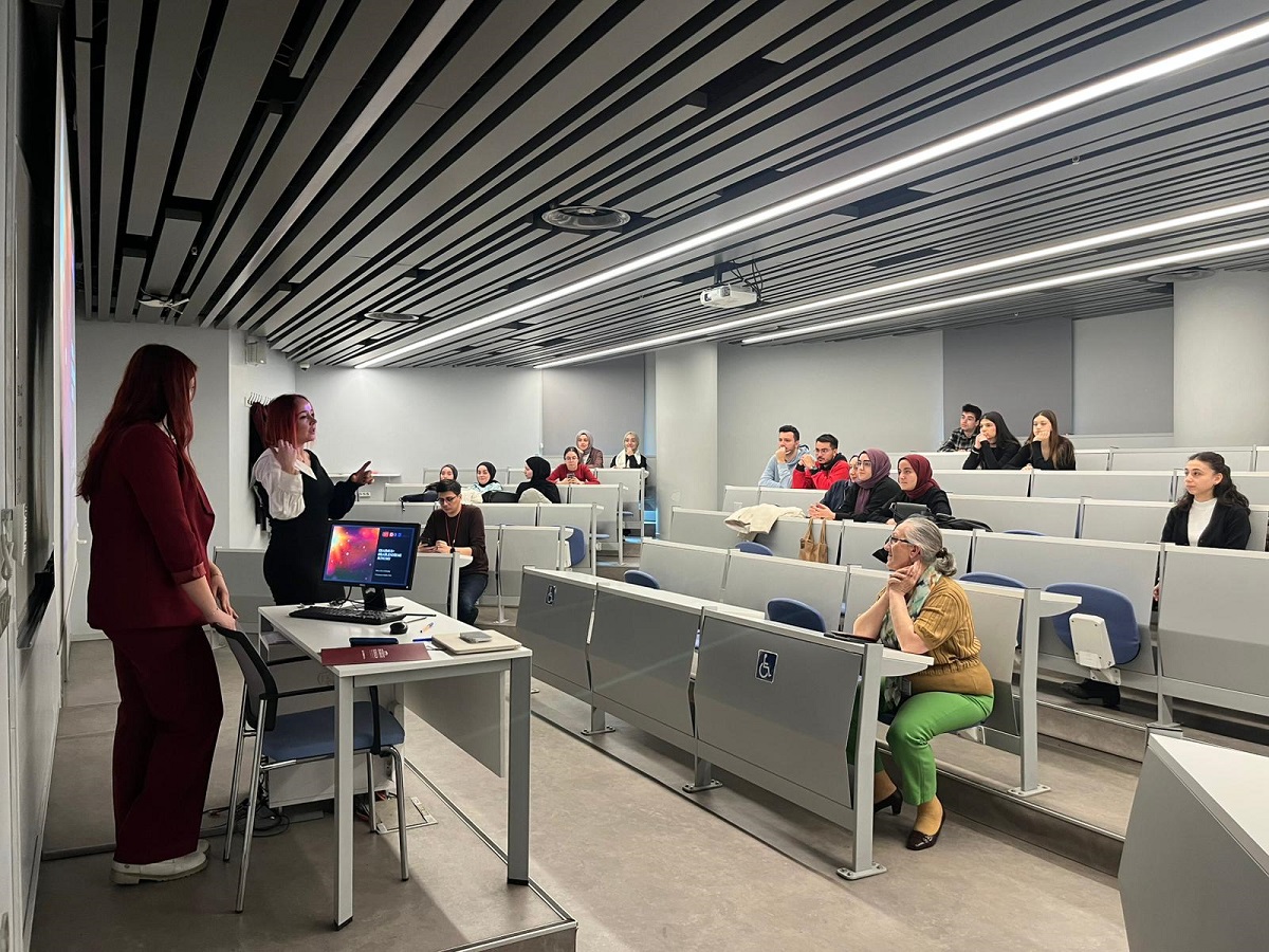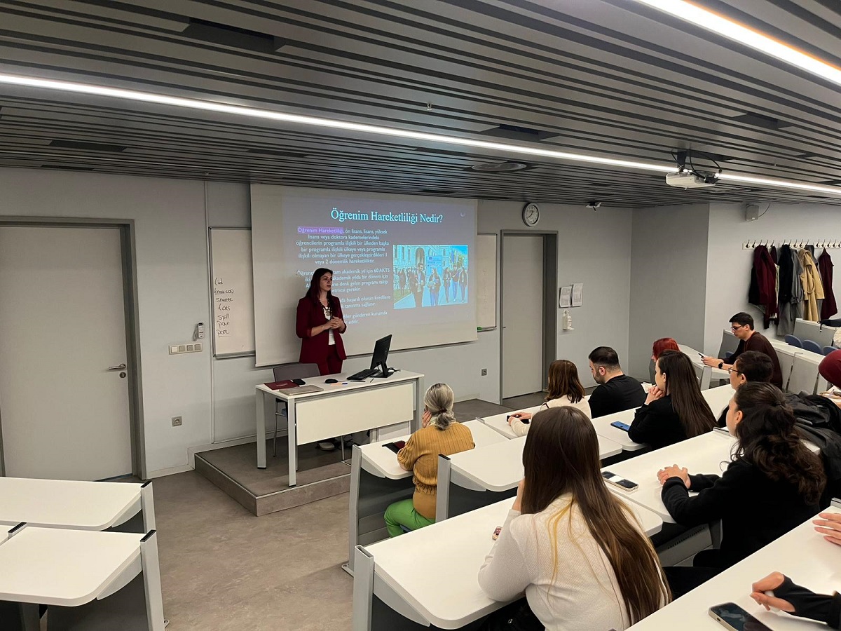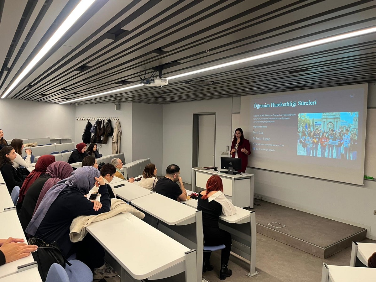 Sağlık Bilimleri Fakültesi öğrencileri, öğretim üyeleri ve idari personeline yönelik düzenlenen programda, Erasmus sürecine ilişkin kapsamlı bilgilendirme yapıldı. Etkinlikte konuşan Uluslararası İlişkiler Ofis Sorumlusu Hatice Elif AYDEMİR, Erasmus programının işleyişi, başvuru süreçleri ve sağladığı fırsatlar hakkında katılımcılara detaylı bilgiler aktardı.