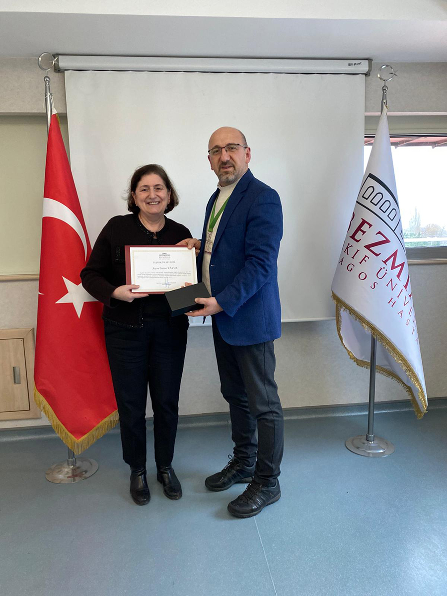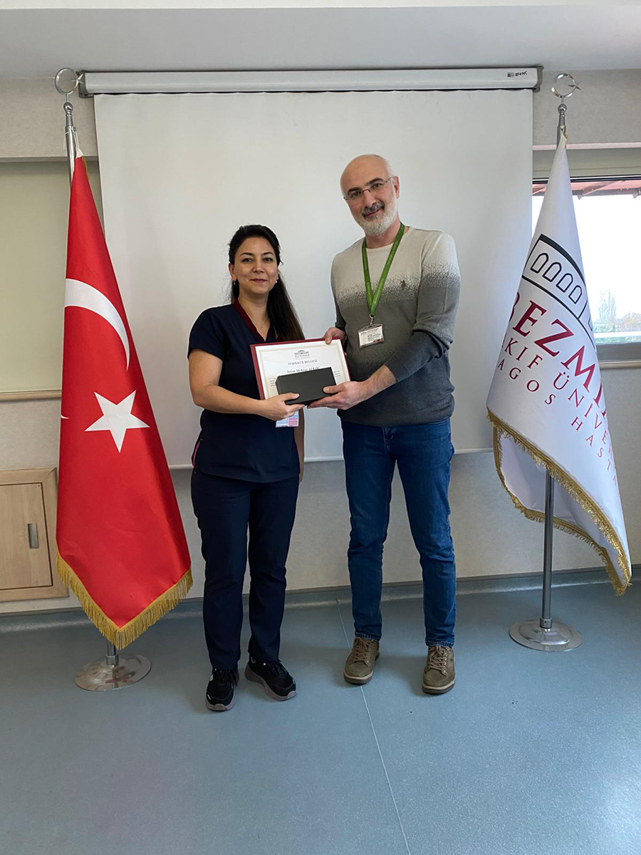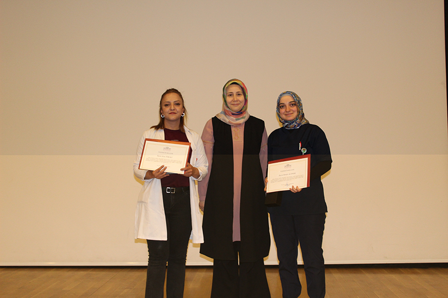 Bu yıl ilk kez hastanelerimiz dışında staj yapılan kurumlar da programa dahil edildi. ALSAN Ortopedi Protez ve Ortez Uygulama Merkezi'nden Rukiye Kılıç ile Vefahane Yaşam Merkezi'nden Demet Dilek de etkinlikte yer alarak öğrencilerimizin uygulama süreçlerine verdikleri katkıları paylaştı.