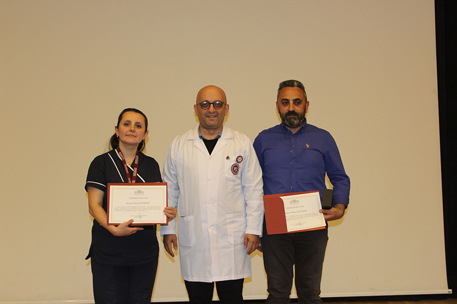 Program kapsamında; hastanelerimizde staj yapan öğrencilerimizin sağlık hizmetlerini etkin biçimde yerine getirmeleri ve birer sağlık neferi olarak yetişmelerinde önemli rol üstlenen personellerimize teşekkür edildi. Etkinliğe; Üniversitemizin dış paydaşları, üniversite ve hastane yöneticilerimiz, program koordinatörlerimiz ile öğrencilerimiz katılım sağladı.