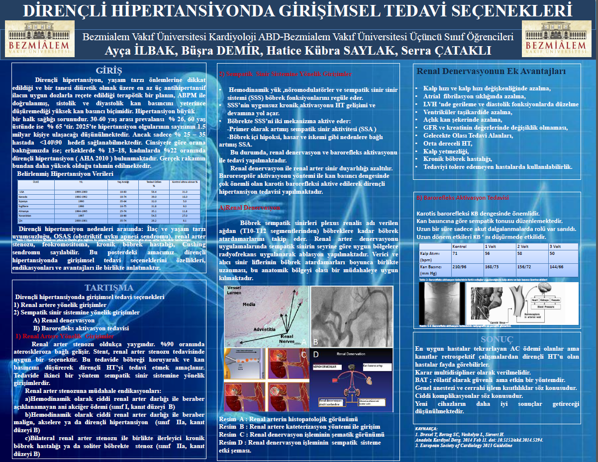 Pamukkale Üniversitesi Tıp Fakültesi Bilimsel Araştırmalar Topluluğu’nun düzenlemiş olduğu poster yarışmasına katılan Fakültemiz 3.sınıf öğrencilerinden Büşra DEMİR, Hatice Kübra SAYLAK, Serra Aydın ÇATAKLI, Ayça İLBAK’ ın “Dirençli Hipertansiyonda Girişimsel Tedavi Seçenekleri” başlıklı posterleri ikinci olmuştur. Öğrencilerimizi tebrik eder başarılarının devamını dilerim.