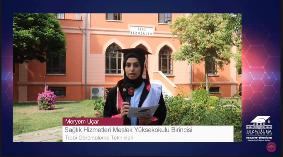 Bezmiâlem Vakıf Üniversitesi Sağlık Hizmetleri Meslek Yüksekokulu 2019-2020 akademik yılı mezunlarını uğurladı. Ülkemizde ve tüm dünyada yaşanan COVID-19 Pandemisi nedeniyle Sağlık Hizmetleri Meslek Yüksekokulu Mezuniyet Törenimiz online ortamda gerçekleştirildi. Töreni Rektörümüz Prof. Dr. Rümeyza Kazancıoğlu, Sağlık Hizmetleri Meslek Yüksekokulu Müdürümüz Prof. Dr. Gökçen Başaranoğlu, akademisyenlerimiz, yöneticilerimiz üniversitemiz senato odasından ve online platformdan katılarak takip etti.