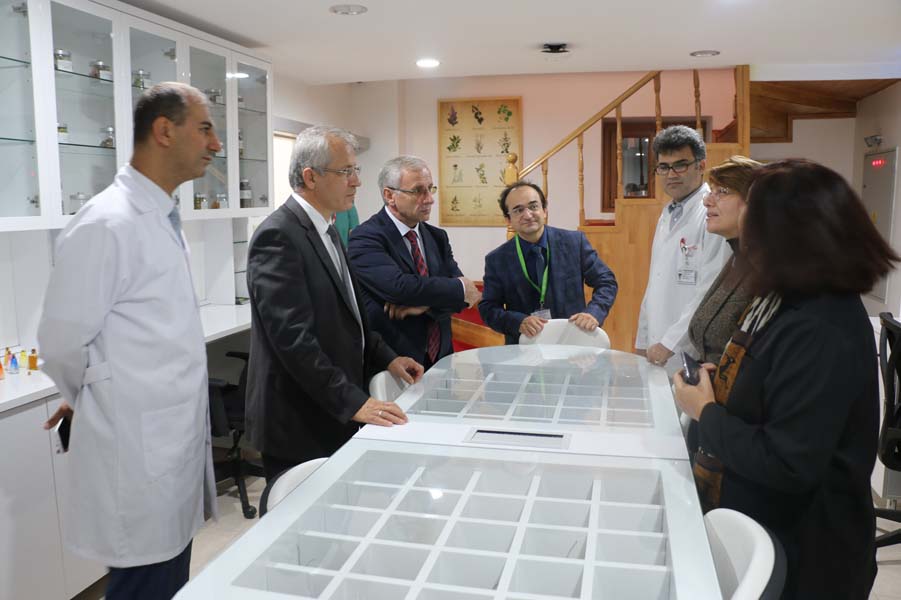 Eczacılık Fakültesi Dekanı Prof. Dr. Gülaçtı Topçu ve Proje Yöneticisi Prof. Dr. Murat Kartal, merkez hakkında detaylı bilgi verdi. Ziyaretiyle bizleri onurlandıran Sayın Turan, bilimsel çalışmalarda karşılıklı bilgi alışverişinde bulunabileceğini ifade etti. Fitoterapi Merkezi’nden sonra Deneysel Uygulama ve Araştırma Merkezi, Moleküler Biyoloji Laboratuvarlarını gezerek çalışmalar hakkında detaylı bilgi aldılar