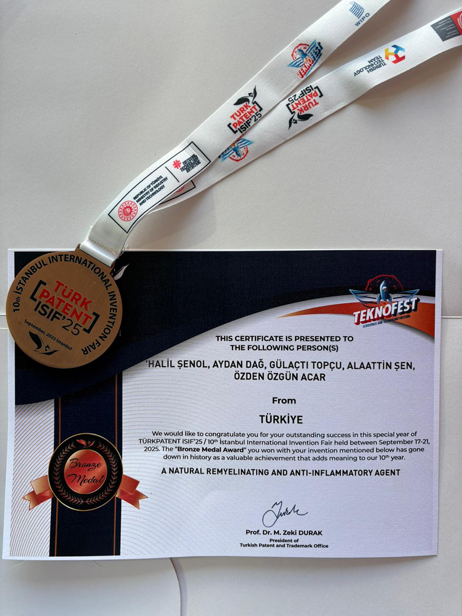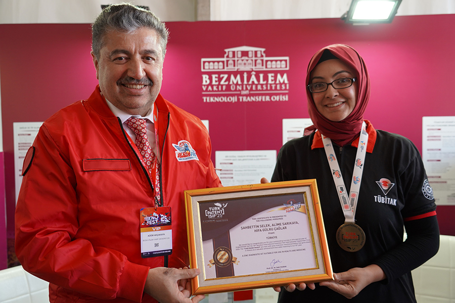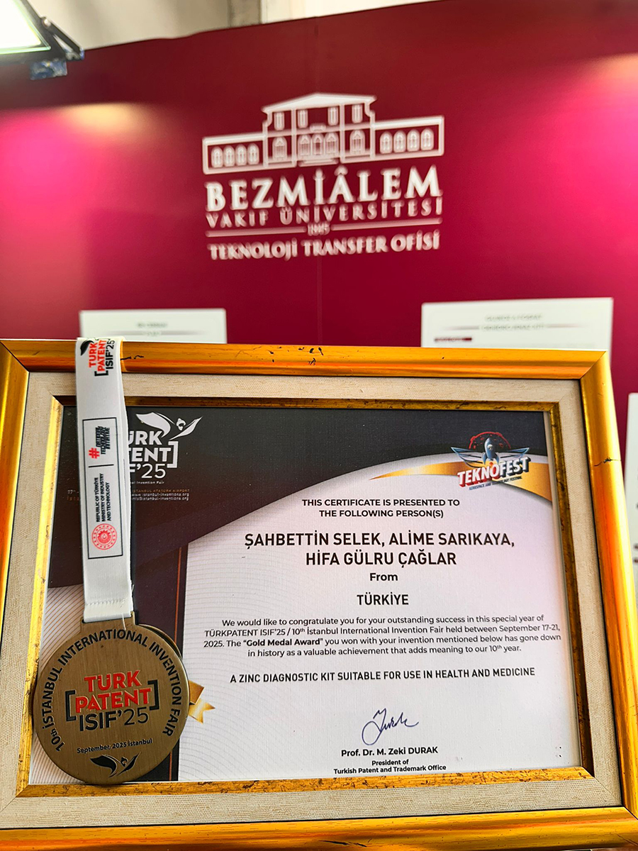 Üniversitemizin başvuru sahibi olduğu “Sağlık ve tıpta kullanım için uygun bir çinko tanı kiti" buluşu, fuarda Altın Madalya ile ödüllendirildi.