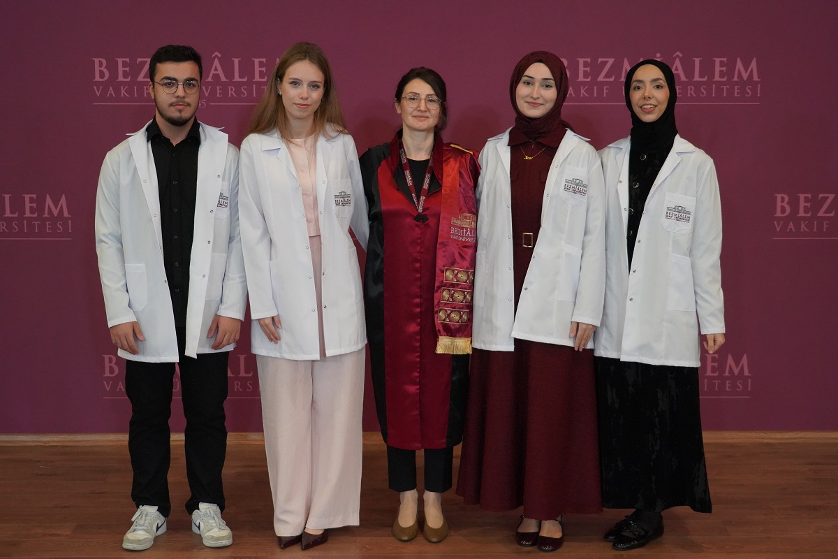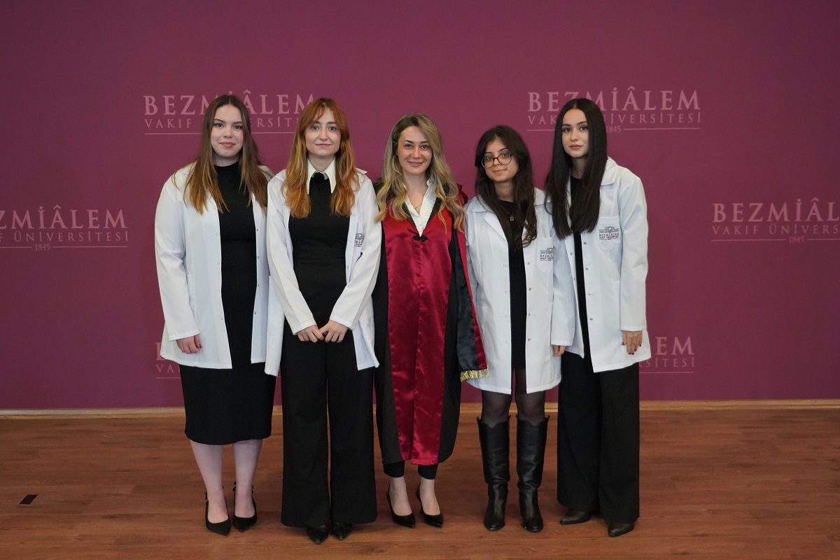 Programın devamında öğrencilerimiz, mesleğe adım atmalarını simgeleyen beyaz önlüklerini giyerek gurur dolu anlar yaşadı. Ailelerimizin ve akademisyenlerimizin yoğun katılımıyla gerçekleşen törende duygu dolu anlar yaşandı.