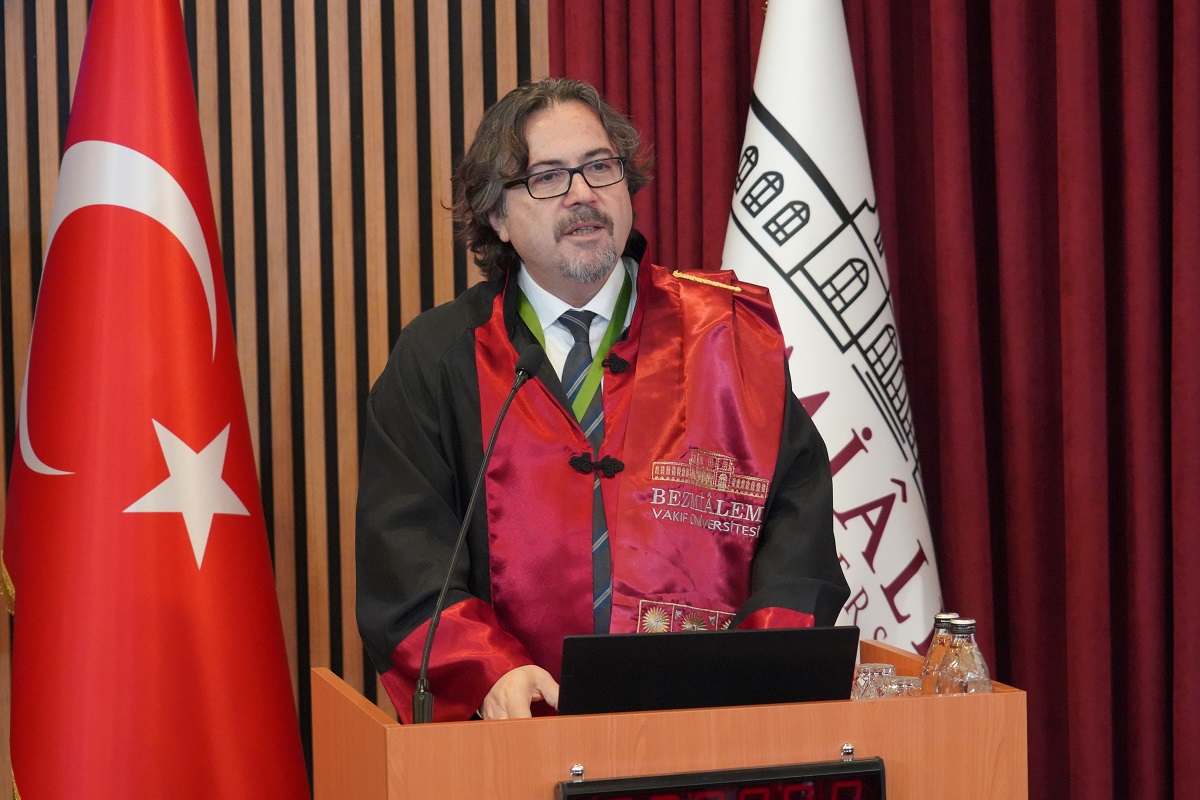 Rektörümüz Prof. Dr. Adem Akçakaya konuşmasında, diş hekimliğinin yalnızca klinik beceri değil; yüksek etik sorumluluk, hassasiyet ve bilimsel yetkinlik gerektiren bir meslek olduğunu vurguladı. Üniversitemizin iki asrı aşan sağlık ve bilim geleneğine dikkat çekerek; artan uluslararası görünürlüğümüz, klinik araştırmalarımız, bilimsel yayın performansımız ve iş birliklerimizle Türkiye'de önemli bir konuma sahip olduğumuzu ifade etti.