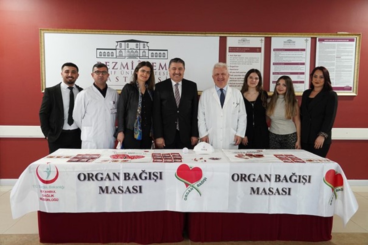 Organ Bağışı Haftasında Farkındalık Çalışmalarına Destek Verdik 11.11.2025 Organ Bağışı Haftası kapsamında hastanemizde kurulan organ bağışı standını ziyaret eden Rektörümüz Prof. Dr. Adem Akçakaya, Organ Bağışı Ekibi ve Tıp Öğrencileri Birliği Kulübü üyeleriyle bir araya geldi. Öğrencilerimizin ve sağlık çalışanlarımızın toplumda organ bağışı bilincini artırmaya yönelik yürüttükleri çalışmaları yerinde dinleyerek bilgi aldı.Ziyarette, organ bağışının “yaşamın bir başka insana emanet edilmesi" olduğu vurgulandı; bu değerin bilincin, duyarlılığın ve insanlığın ortak paydasını temsil ettiği ifade edildi.Rektörümüz, farkındalık oluşturmak amacıyla yürütülen bu anlamlı çalışmalara katkı sunan tüm öğrencilerimizi ve sağlık çalışanlarımızı tebrik ederek teşekkürlerini iletti.Bezmialem Vakıf Üniversitesi olarak, organ bağışı konusunda toplumsal duyarlılığı güçlendiren her girişimi desteklemeye devam ediyoruz. Organ Bağışı Haftasında Farkındalık Çalışmalarına Destek Verdik SON HABERLER Bezmiâlem Vakıf Üniversitesi ve Başakşehir Belediyesi: Eğitim ve Sağlıkta Güçlü İş Birliği 05.02.2026 Akademik Kadromuz Bilimsel Yetkinliğiyle Güçleniyor 04.02.2026 Sağlık Eğitiminde Kalite Tescillendi: MEDEK’ten Tam Akreditasyon 03.02.2026 Tüm Haberler