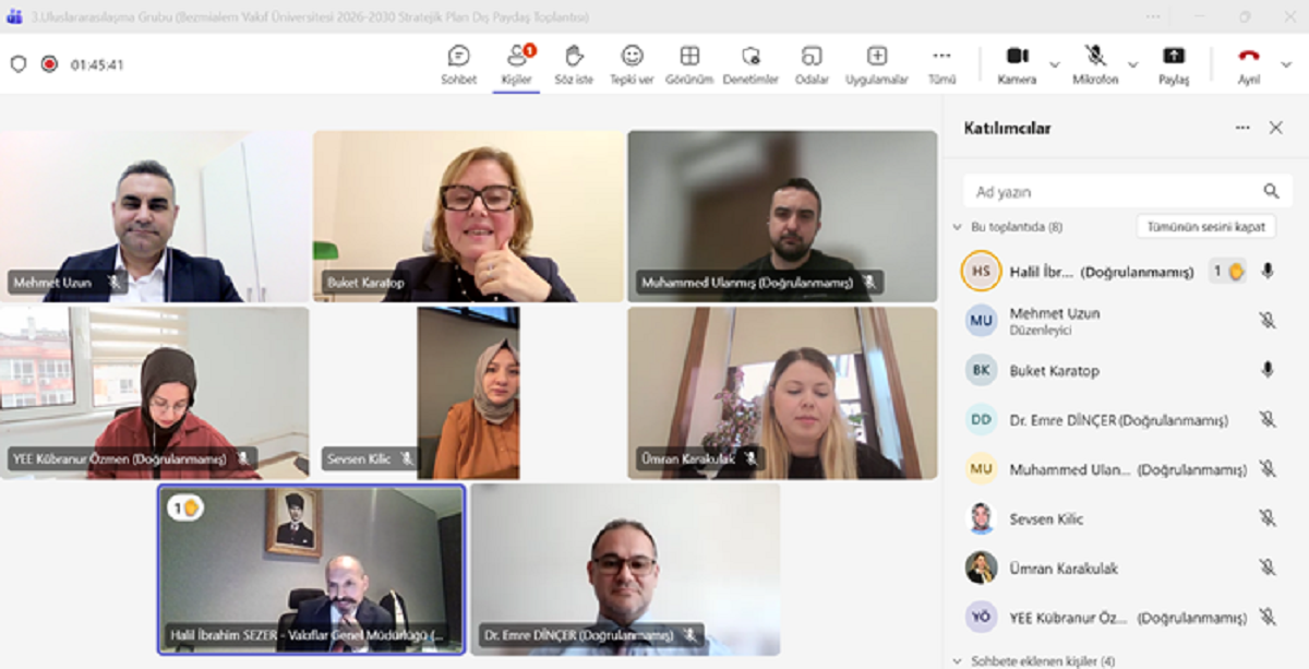 Toplantıda paydaşların görüş ve önerileri titizlikle ele alınmış; mevcut durum analizi derinleştirilmiş ve sürekli iyileştirme mekanizmalarına katkı sağlayacak çıktılar elde edilmiştir. Elde edilen geri bildirimlerin stratejik planlama ve kalite güvence süreçlerine yansıtılmasıyla, üniversitemizin kurumsal olgunluğu ve sürdürülebilir değer üretme kapasitesi güçlendirilmiş olacaktır.